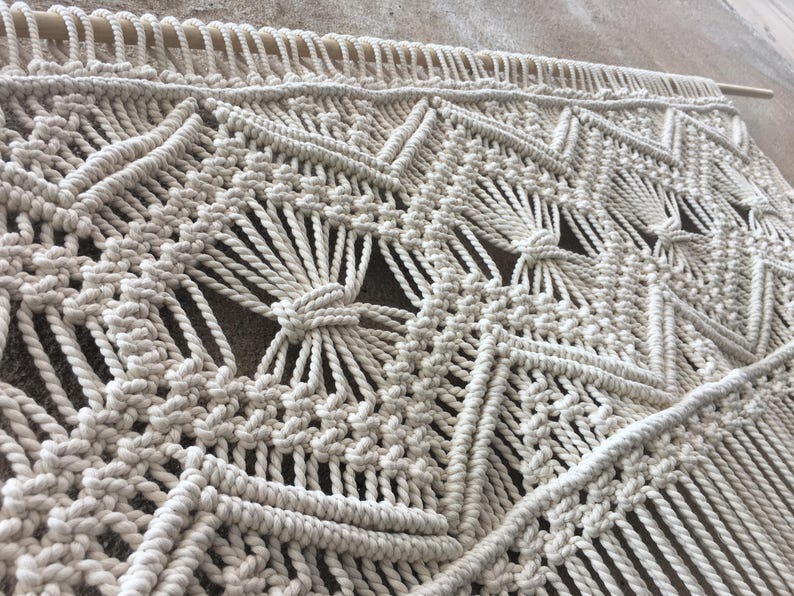 Macrame wall hanging shelf, boho wall decor,woven rope bohemian shelves, macrame shelf wall hanging. How to make a macrame layered wall hanging i made a macrame layered wall hanging using basic knot and diamond pattern. Macrame is a beautiful artform that involves intricate knots and meticulous designs. In general, the macrame wall hanging comes in several fantastic versions. Large macrame wall hanging, wall art, big macrame, boho wall decor, macrame decor, housewarming gift , modern macrame, bohemian wall art. I'm experimenting with some string wall art and this easy diy macrame and driftwood wall hanging is part of that experiment. Gorgeous multi layered macrame wallhanging to lend a bohemian feel to your home, wedding or workspace. Macrame wall hanging tutorial | easy diy for macrame beginners. There are so many knots and ways to tie them in the art of macrame, it can seem very overwhelming and an easy craft. Have you ever wanted to try your hand at macrame. The cool thing about their tutorial is that they will show you first how to do the knots before going through the main project. In this macrame tutorial i'll show you how to make macrame wall hanging. Macramé is the art of knotting rope or cord to form patterns and was all the rage.