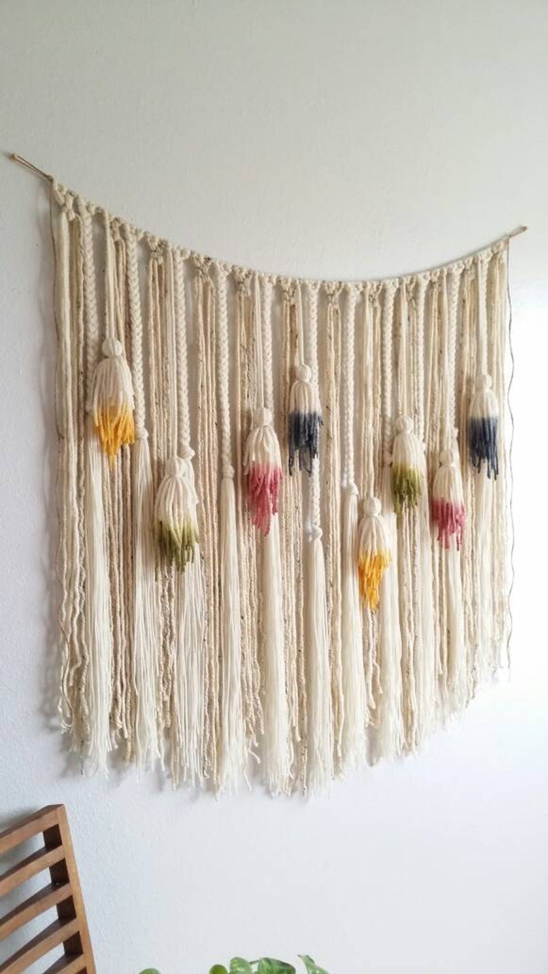 Yarn wall hanging. Macramé hanging. Large. Tassels ... from i.etsystatic.com So let's not waste any more time and delve into some of the finest and easy to try diy macrame wall hanging ideas to get heavily inspired to try some. I shared my progress along on. Macrame wall hanging tutorial | easy diy for macrame beginners. Diy projects jun 11, 2013. 1m wide x 120cm long boho wall art wedding backdrop. There are so many knots and ways to tie them in the art of macrame, it can seem very overwhelming and an easy craft. Make sure to subscribe to the macrame for beginners youtube channel for more fun beginner tutorials! Just a couple of knots to learn for one great project.